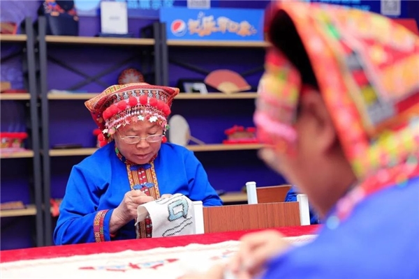 在发布会上现场还展示了更多与非遗联名的创新产品:限量版瑶绣环保袋,包袋上的“挤挤纹”和“人人纹”不仅展现了传统瑶绣的独特工艺,更有“热爱”和“传承”之意,这款环保袋在此前的“百事盖念店”推出时受到了年轻人消费者非常大的关注和喜爱,他们觉得把非遗文化背在身上非常有潮范儿。非遗刺绣限量罐,是在经典百事蓝的罐身上融入苗绣蝴蝶、彝绣游鱼、京绣祥云,表达了“溯源”、“共融”、“焕新”的主题理念,这种传统文化与品牌产品共生共融的设计,可谓独具匠心。